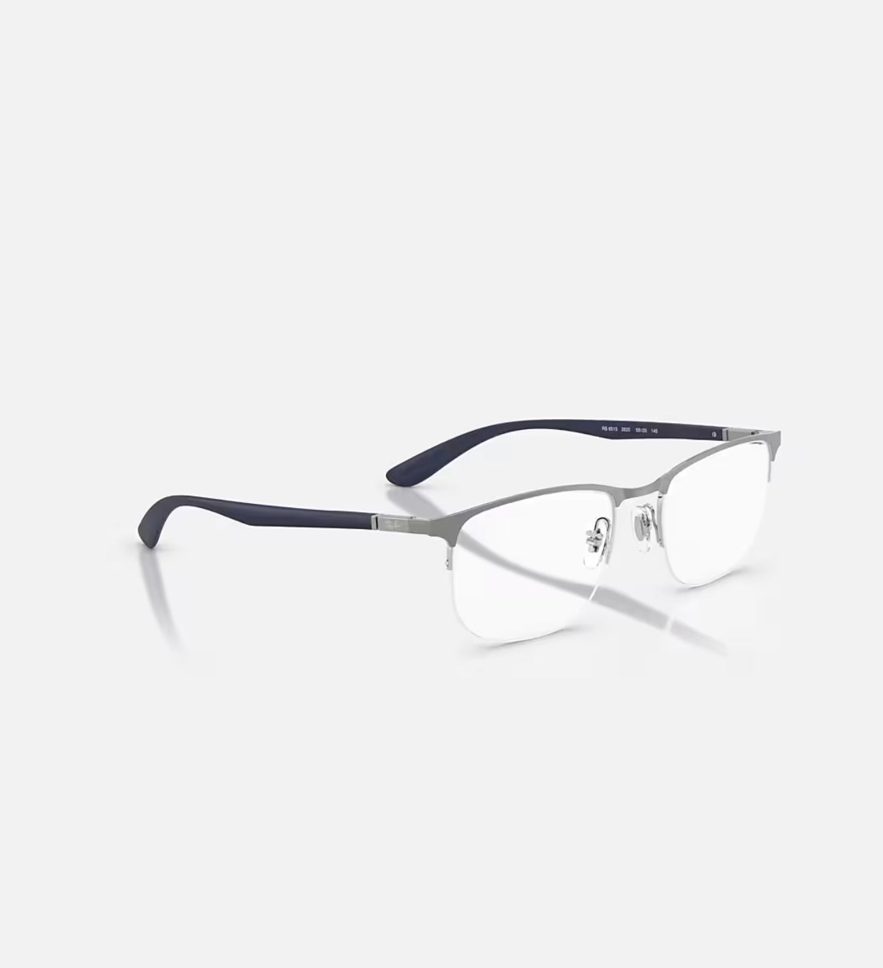 Ray-Ban RB6513 Optics features a metal frame with an irregular shape, offering a modern and stylish look. The matte gunmetal on silver color combination adds a sleek touch to these eyeglasses. Perfect for everyday wear, they are sure to make a statement wherever you go.